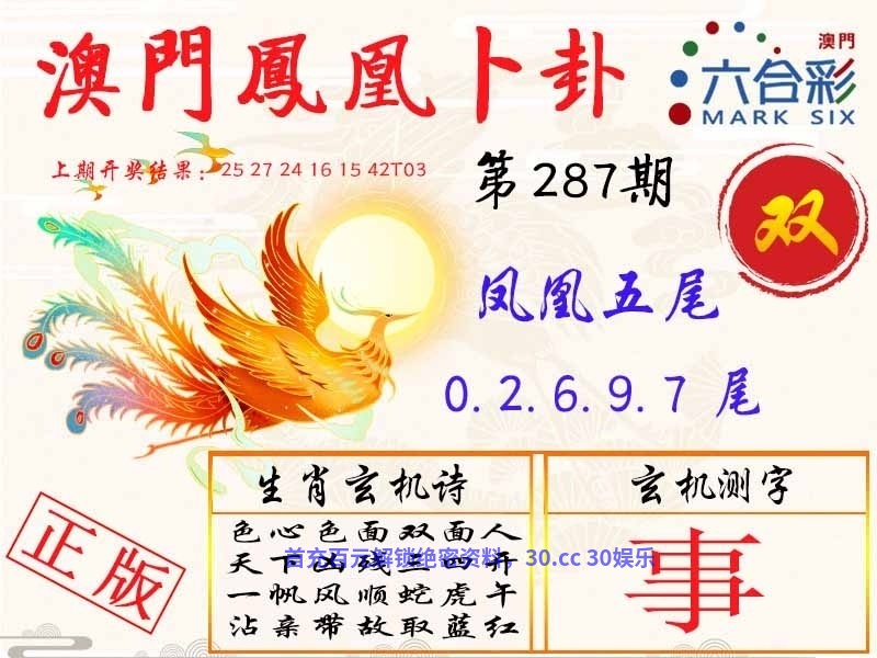 287期:绝杀三肖【马兔羊】特开:猴34准